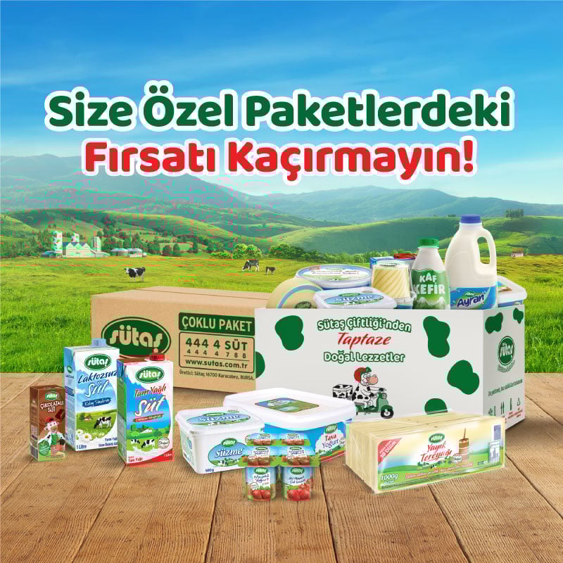 Sütaş Çiftliği’nden evinize taptaze! Soğuk zinciri koruyarak, ekiplerimizle getiriyoruz. Sütaş Çok Satanlar Paketi 1   hemen satın al, Süt Puan topla!