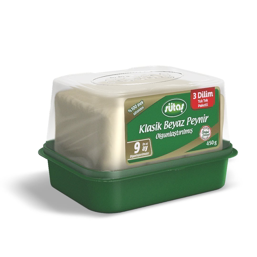 Sütaş Klasik Beyaz Peynirler, sadece süt, peynir mayası ve sofra tuzu içerir. Hiçbir katkı maddesi içermez. Sütaş Çiftliğinin taptaze sütlerine tüm analizleri yapıldıktan üretim için hazırlanır. Sonrasında çeşitine göre inek, koyun veya keçi sütleri peynir teknelerine alınarak peynir mayası ilave edilir. Geleneksel üretim yöntemlerine bağlı kalınarak taze peynir haline dönüştürülür. Üretilen taze peynirler tenekelere alınarak en az 270 gün dinlendirilir. Dinlendirme sonrasında ideal yapı ve lezzetine kavuşan olgunlaştırılmış beyaz peynirler paketlenerek tüketicilere sunulur. Rotası ve sıcaklık seviyesi sürekli izlenen araçlarımızla, soğuk zinciri koruyarak Türkiye’nin dört bir yanına ulaştırılır.