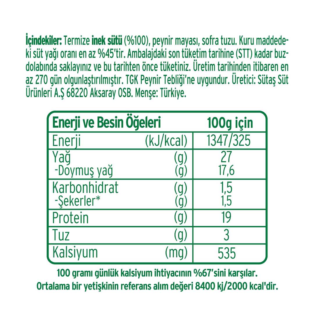 Sütaş Klasik Beyaz Peynirlerin raf ömrü 270 gündür.